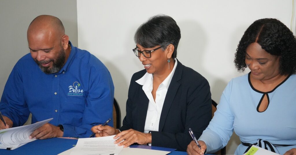 (City of Belmopan, August 28, 2025) – Today, the Belize Fund for a Sustainable Future awarded Emergency Response Grants totalling BZ$250,000 to the Belize Tourism Industry Association (BTIA) and the Belize Hotel Association (BHA), to help address the worsening sargassum emergency impacting people, ecosystems, and livelihoods. The emergency funding is equally distributed between the BTIA and BHA, with each organization receiving BZ$125,000 to support affected hotels in San Pedro, Caye Caulker, Hopkins, Seine Bight, Placencia, and other offshore islands. The Funds will be used to support sargassum removal through equipment rental, hiring of personnel, and safe disposal. This intervention will also help maintain cleaner beaches for both residents and visitors. “Beyond tourism impacts, decomposing sargassum creates serious respiratory health risks for coastal communities, kills marine life through oxygen depletion, contaminates our waters, and threatens the livelihoods of fishermen and other coastal workers,” expressed Dr. Leandra Cho-Ricketts, Executive Director of the Belize Fund. “While we cannot solve this emergency alone, we want to help reduce its immediate impacts on both our environment and our people.” The Signing Representatives were: • Dr. Leandra Cho-Ricketts (Belize Fund) • Ms. Linette Canto (BTIA) • Mr. Reynaldo Malik (BHA) The two-month intervention operates through a re-granting mechanism, allowing BTIA and BHA to distribute funds directly to the most severely affected hotels in coastal areas where they are needed most urgently.